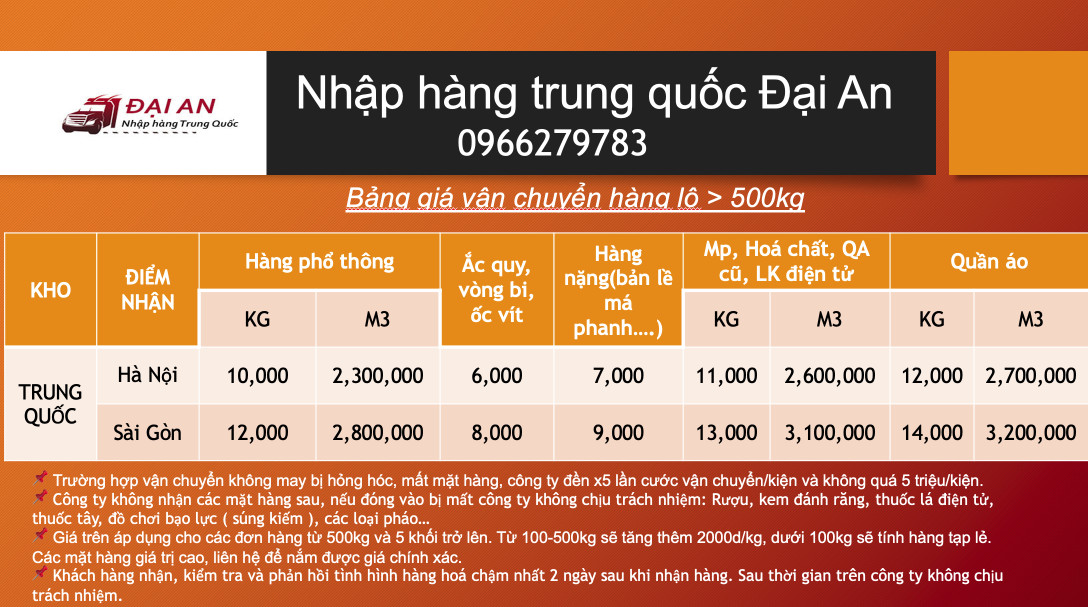Lưu ý:- Hàng lô là lô hàng chỉ có một mặt hàng với tổng cân đơn hàng > 100kg (Không áp dụng đối với các mặt hàng khó đi như các mặt hàng nhạy cảm, thuốc lá điện tử, fake)